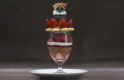 色や形などの見た目や様々な食感に加え、チョコレートの甘さにコーヒーのほろ苦さ、いちごの酸味などを組み合わせた、こだわりのパフェに仕上がっています♪