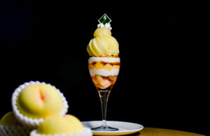 清水白桃 “だけ” を贅沢に使用したプレミアムなパフェです🍴
